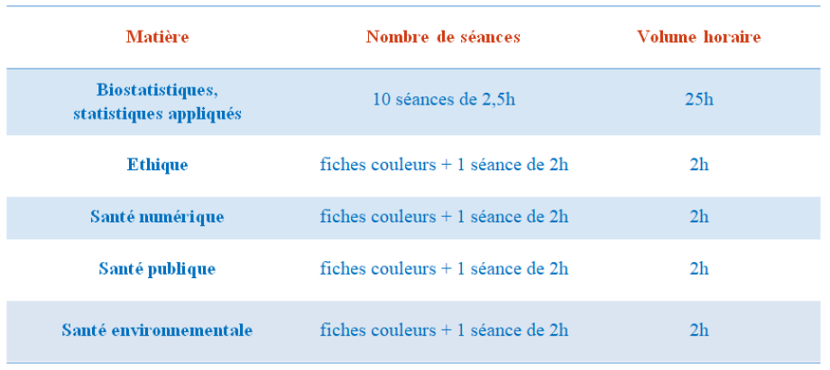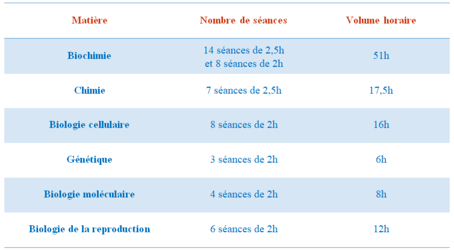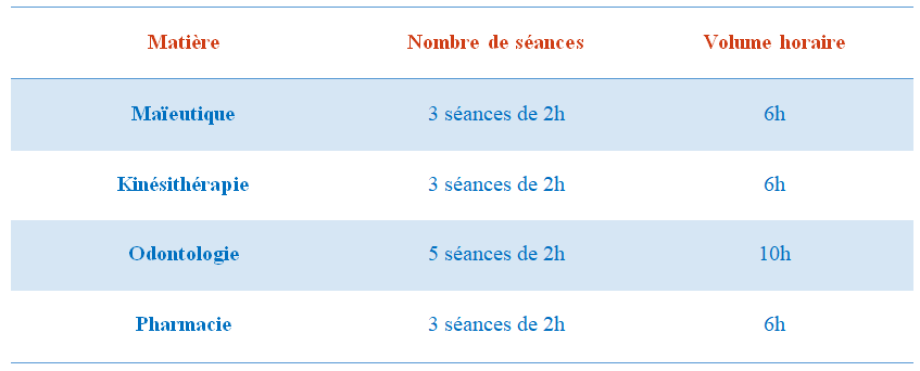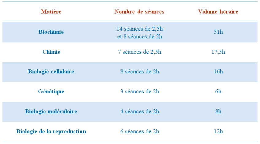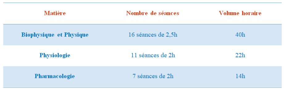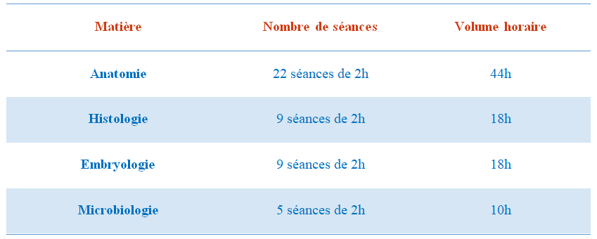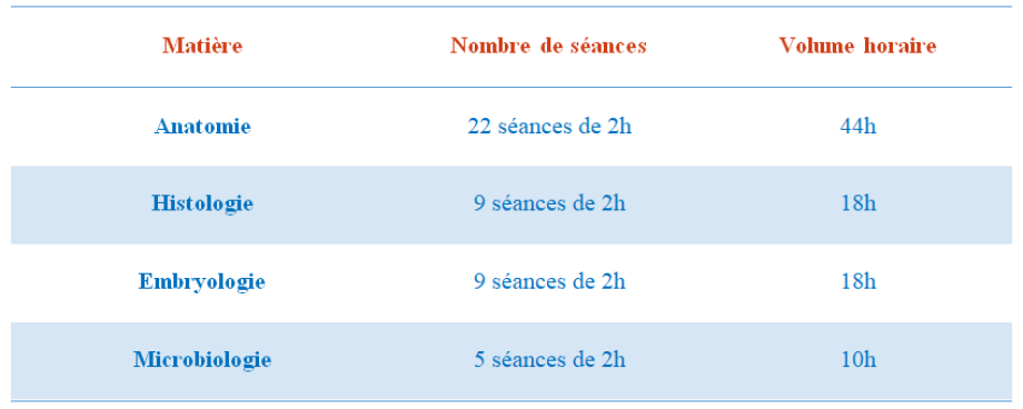 Pendant cette prépa d’été, le rythme est le suivant : deux cours par jour (cours de 2h s'il s'agit d'une matière médicale ou de 2,5h s'il s'agit d'une matière scientifique), 4 jours par semaine (pas de cours le Mercredi). Ainsi, suivant les matières, nous aurons fait entre un tiers et la moitié du programme du 1er semestre. A partir de Septembre, la prépa établira des plannings semaine par semaine. Le rythme moyen sera de 6 cours par semaine.